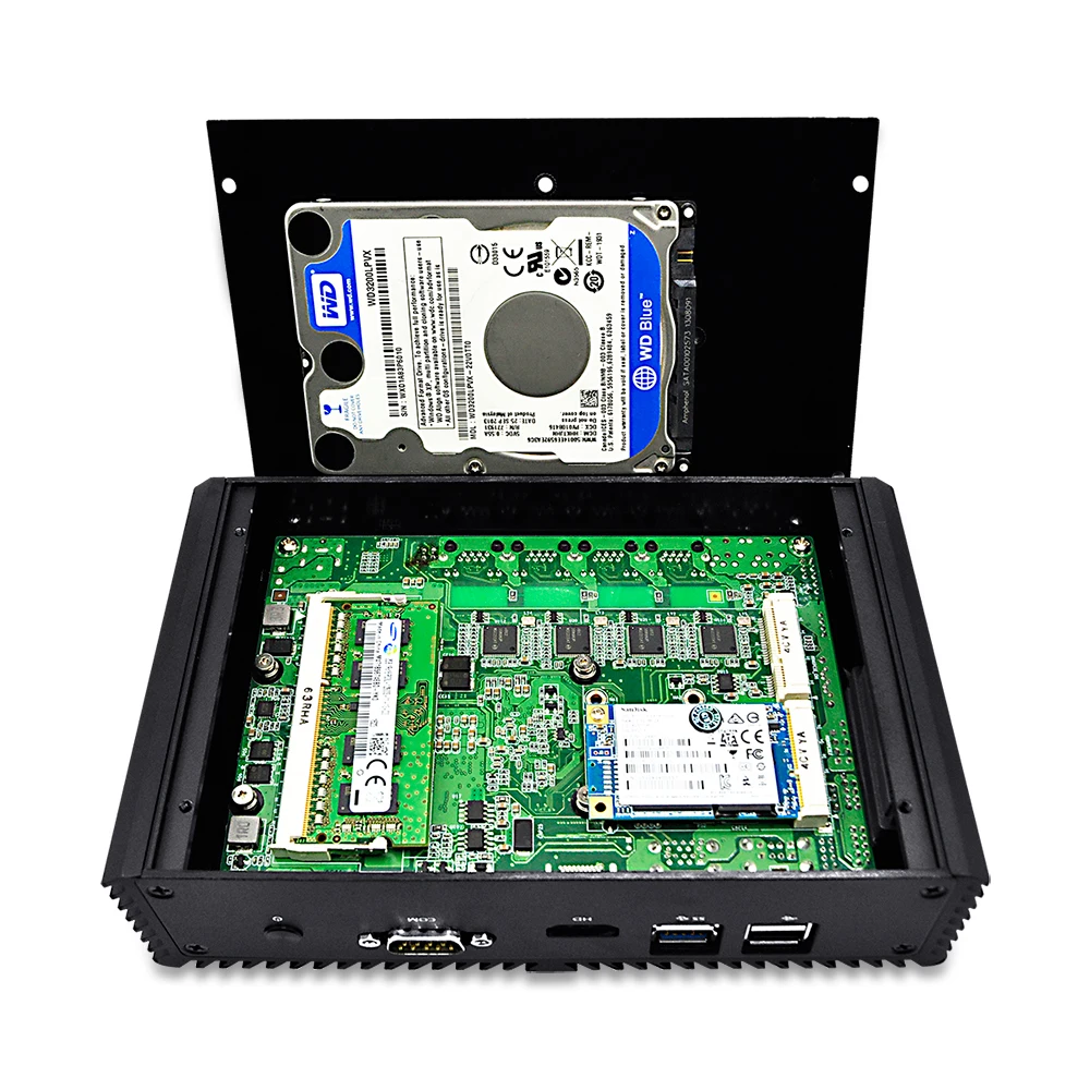 QOTOM Fanless Mini Industrial PC Core i3 i5 Processor TDP 11.5W 4x RS-232 2x HD Type Ports Dual NIC Mini PC Win 7/8/10 Linux