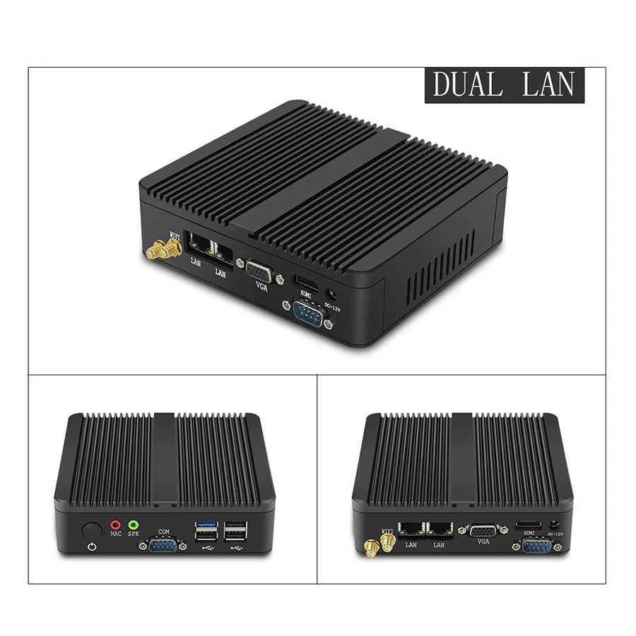 | Mini PC Fanless Celeron J1900 N2810 Dual LAN Windows 10 Mini Computer 2*Gigabit Ethernet 2*COM WiFi HDMI VGA |