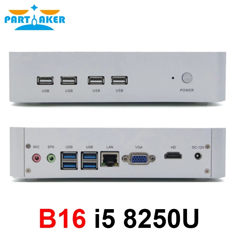 Partaker B16 Intel Core i5 8250U DDR4 Fanless Mini PC WIN10 Mini PC Windows10 With HDMI VGA USB