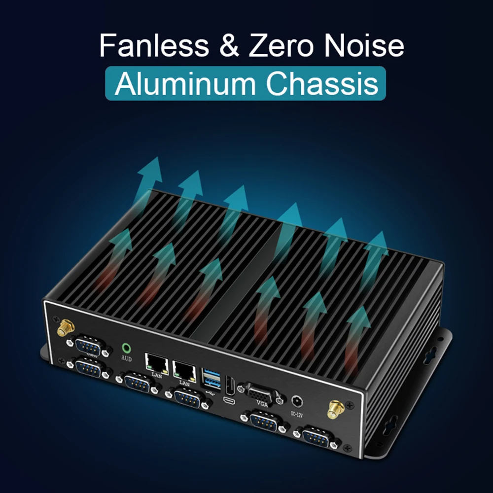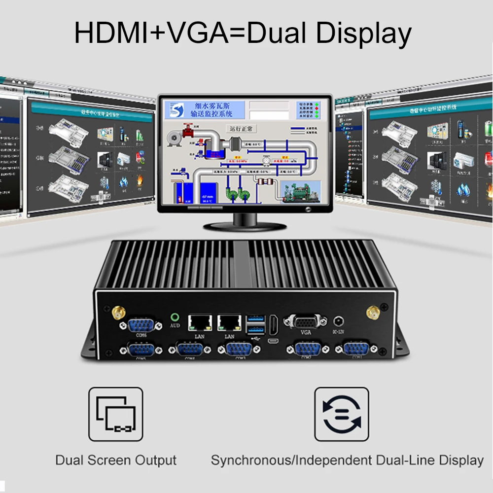 HLY Fanless Industrial Mini PC Core i5 8350U 7200U i7 7500U 2*LAN 2*RS232 8*USB Micro Computer Linux Windows 10 7 Wifi HDMI VGA