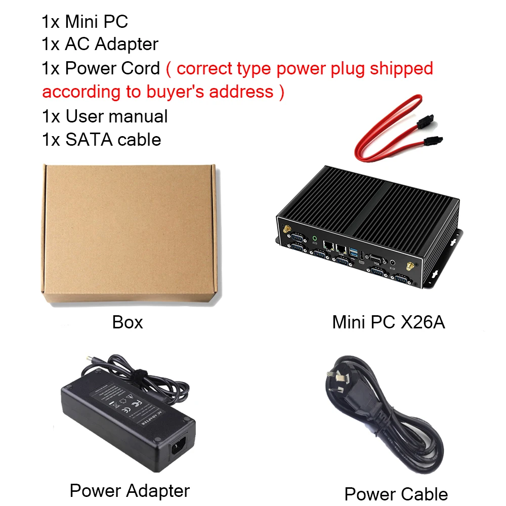 | Package Content | 1x Mini PC,1x AC Adapter ( correct type power plug shipped according to buyer's address ),1x Power Cord,1x SATA cable,1x User manual | |